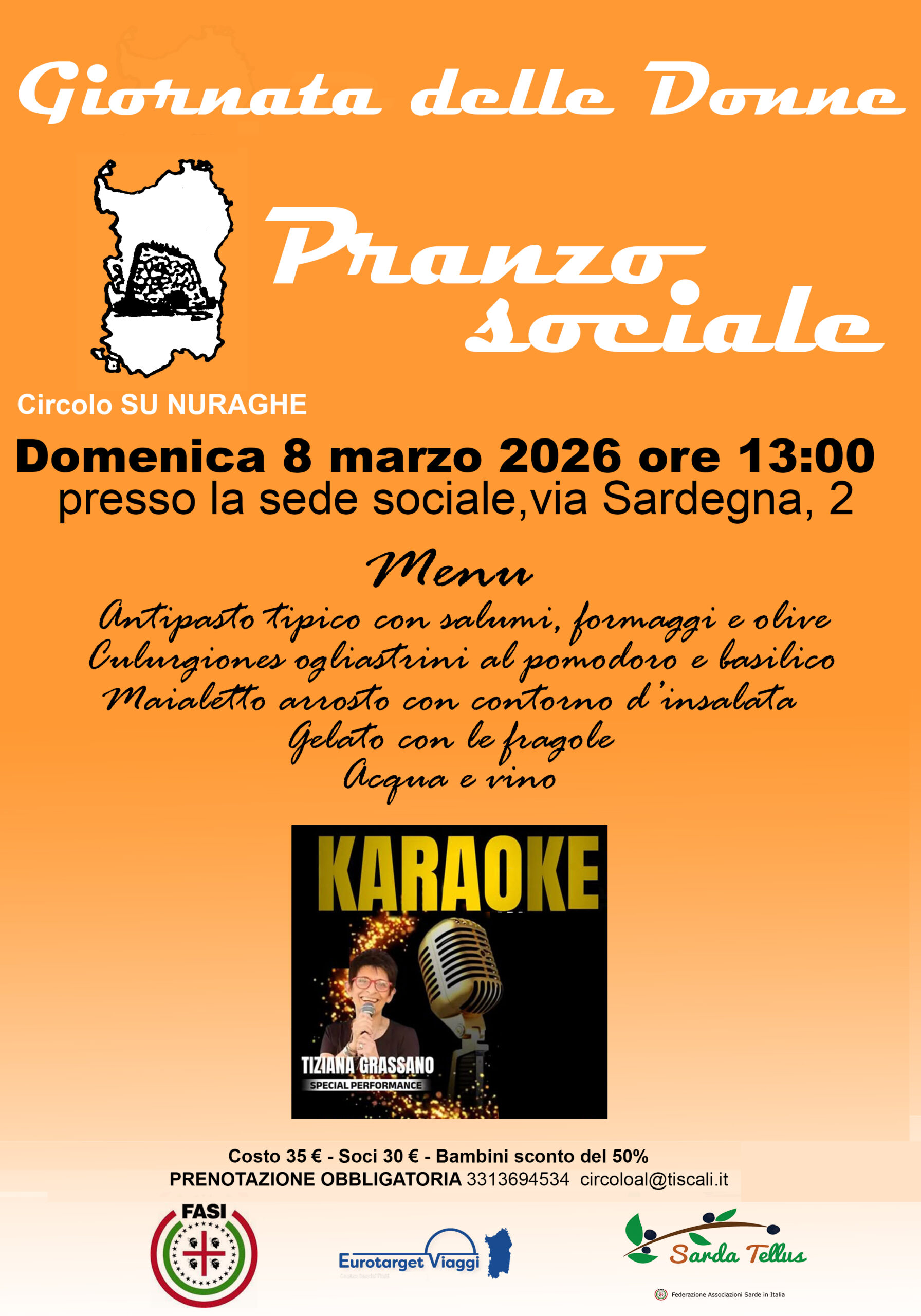 8 MARZO FESTA DELLA DONNA: CONVIVIALITÀ E MUSICA al Circolo “Su Nuraghe”