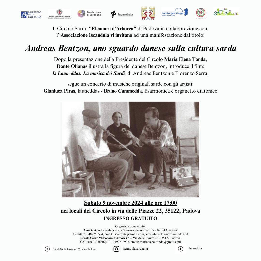 Il prossimo 9 novembre 2024, sarà dedicato ad un danese che nel 1959 ha organizzato nel Museo Nazionale di Danimarca una esposizione dedicata alla vita e alla cultura sarda, Andreas Fridolin Weis Bentzon (1936-1971).