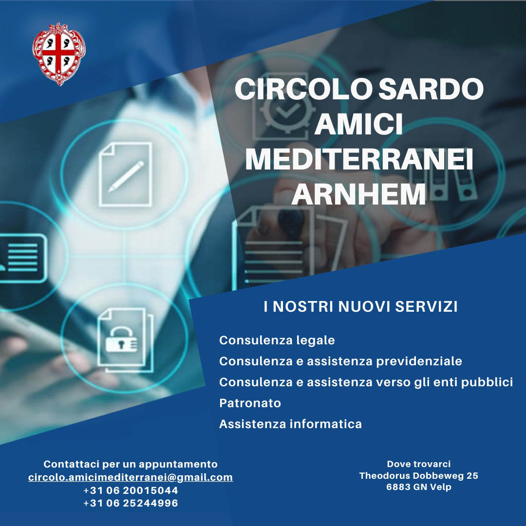 Si porta a conoscenza che a partire dal 1 febbraio 2024, all’interno del Circolo Sardo “Amici Mediterranei” è stato creato un Centro di Servizi.