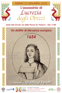 Pierluigi Peretti svolgerà nella sede del Circolo la conferenza sull’assassinio di Lucrezia degli Obizzi nel 1654, un delitto di rilevanza europea (sabato 22 novembre, ore 17,00).