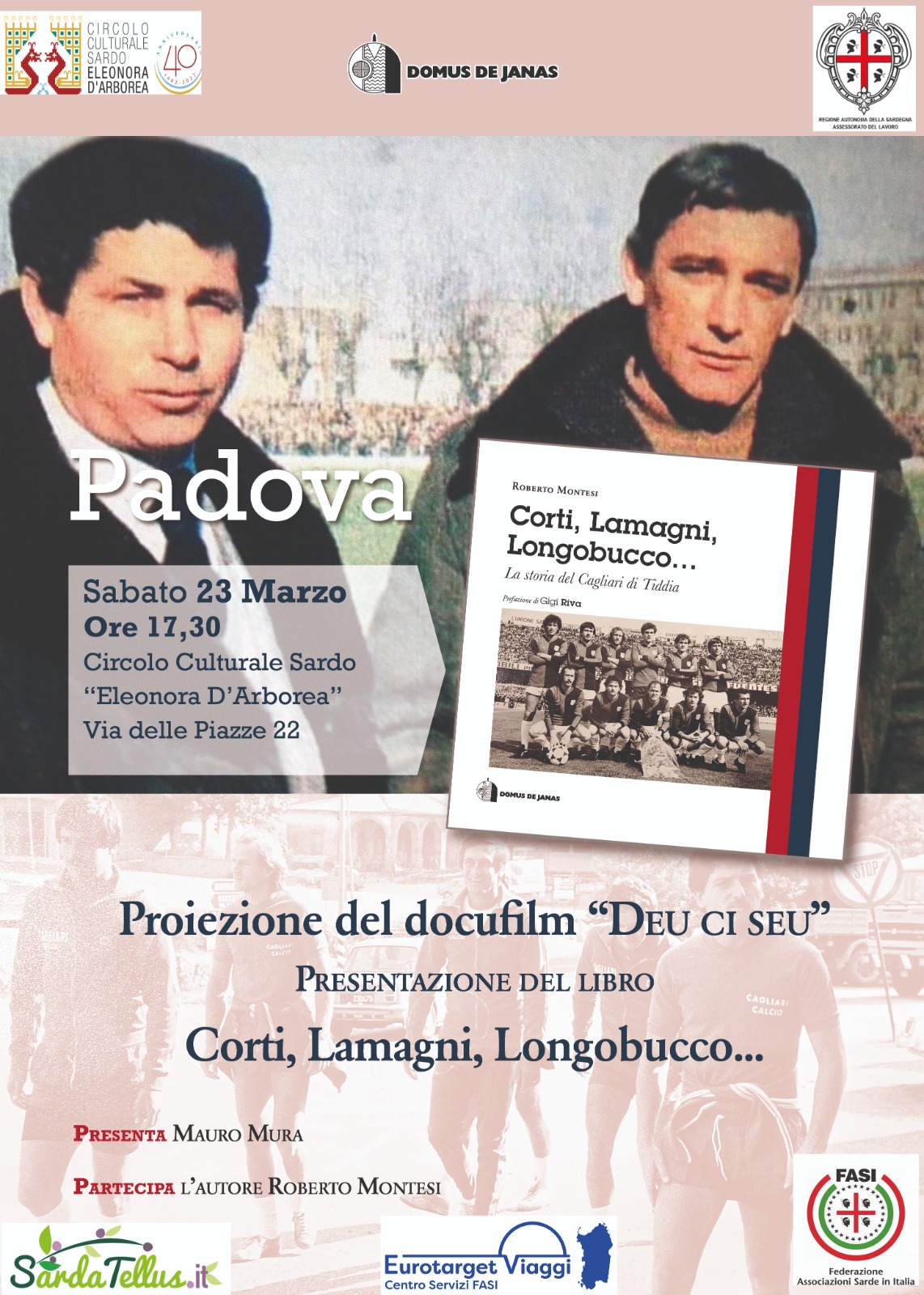 Sabato 23 marzo il Circolo Culturale Sardo “Eleonora d’Arborea” ospiterà la presentazione del libro “Corti, Lamagni, Longobucco…”, la storia del Cagliari di Mario Tiddia, a firma del giornalista Roberto Montesi.