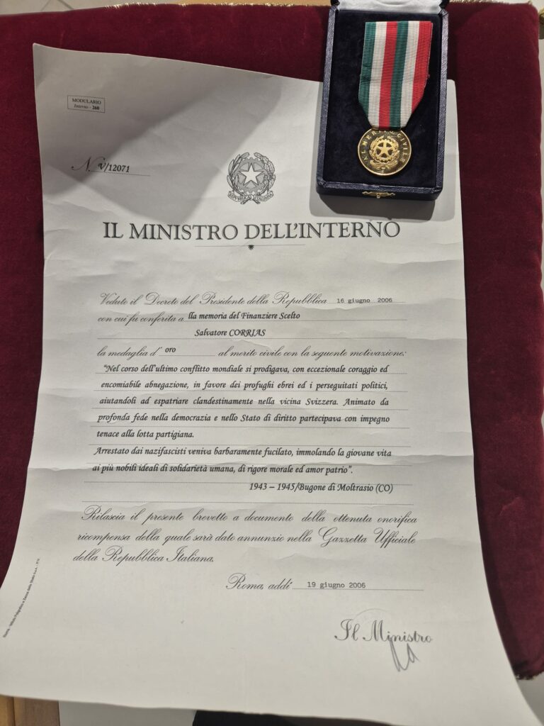 Salvatore Corrias, originario della provincia di Cagliari, è una figura emblematica del coraggio e della resistenza contro le ingiustizie del regime fascista. Fucilato il 28 gennaio 1945 da un gruppo di fascisti della Banda Tucci, Corrias ha sacrificato la propria vita per salvare centinaia di perseguitati, favorendo la loro fuga verso la Svizzera attraverso un valico sul Monte Bisbino. Per il suo eroico gesto, gli sono state conferite due Croci al Merito di Guerra e la Medaglia d’Oro al Merito Civile. Nel 2006, la Commissione dell’Istituto Yad Vashem ha riconosciuto il suo valore umanitario conferendogli la Medaglia di Giusto tra le Nazioni.